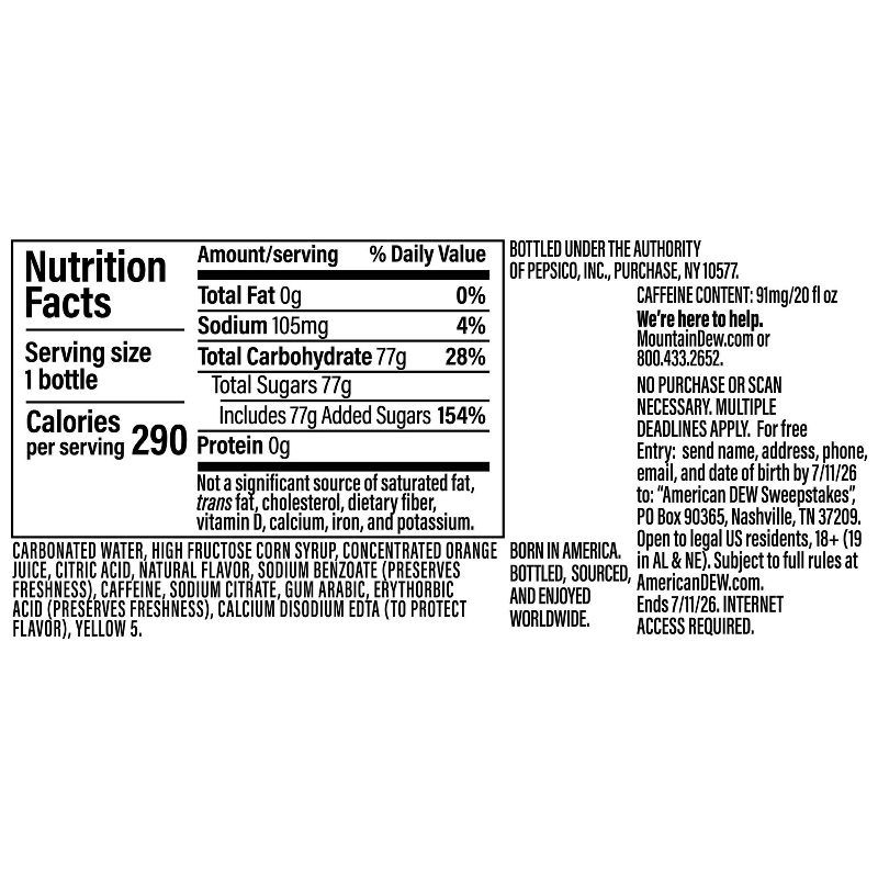 Carbonated Water, High Fructose Corn Syrup, Concentrated Orange Juice, Citric Acid, Natural Flavor, Sodium Benzoate (Preserves Freshness), Caffeine, Sodium Citrate, Gum Arabic, Erythorbic Acid (Preser…