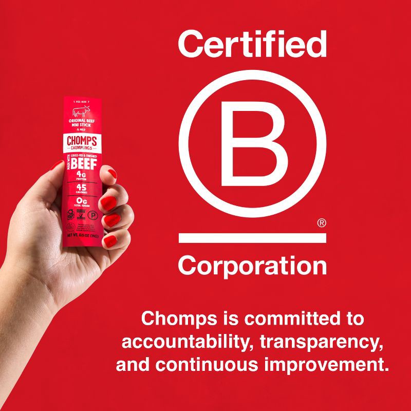 - As a Certified B Corp Chomps is committed to accountability, transparency, and continuous improvement