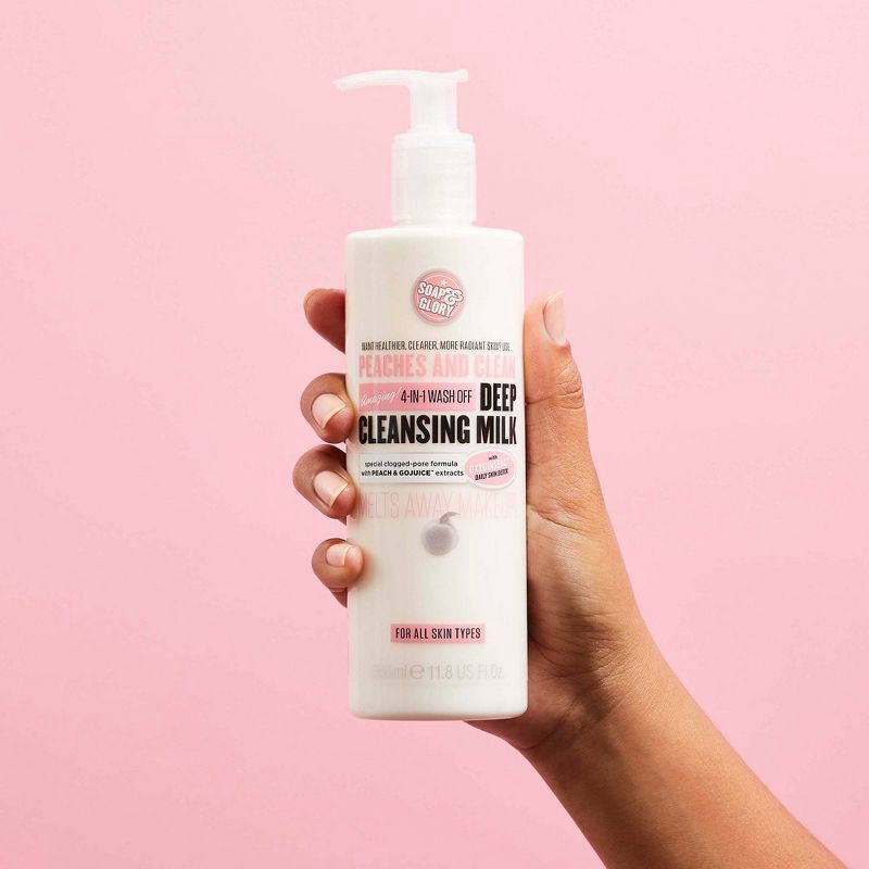 Soap & Glory's Peaches & Clean is an amazing four-in-one deep cleansing milk that helps to purify and clarify, energize, smooth, and melt away makeup. Want healthier-looking, clearer, more radiant ski…
