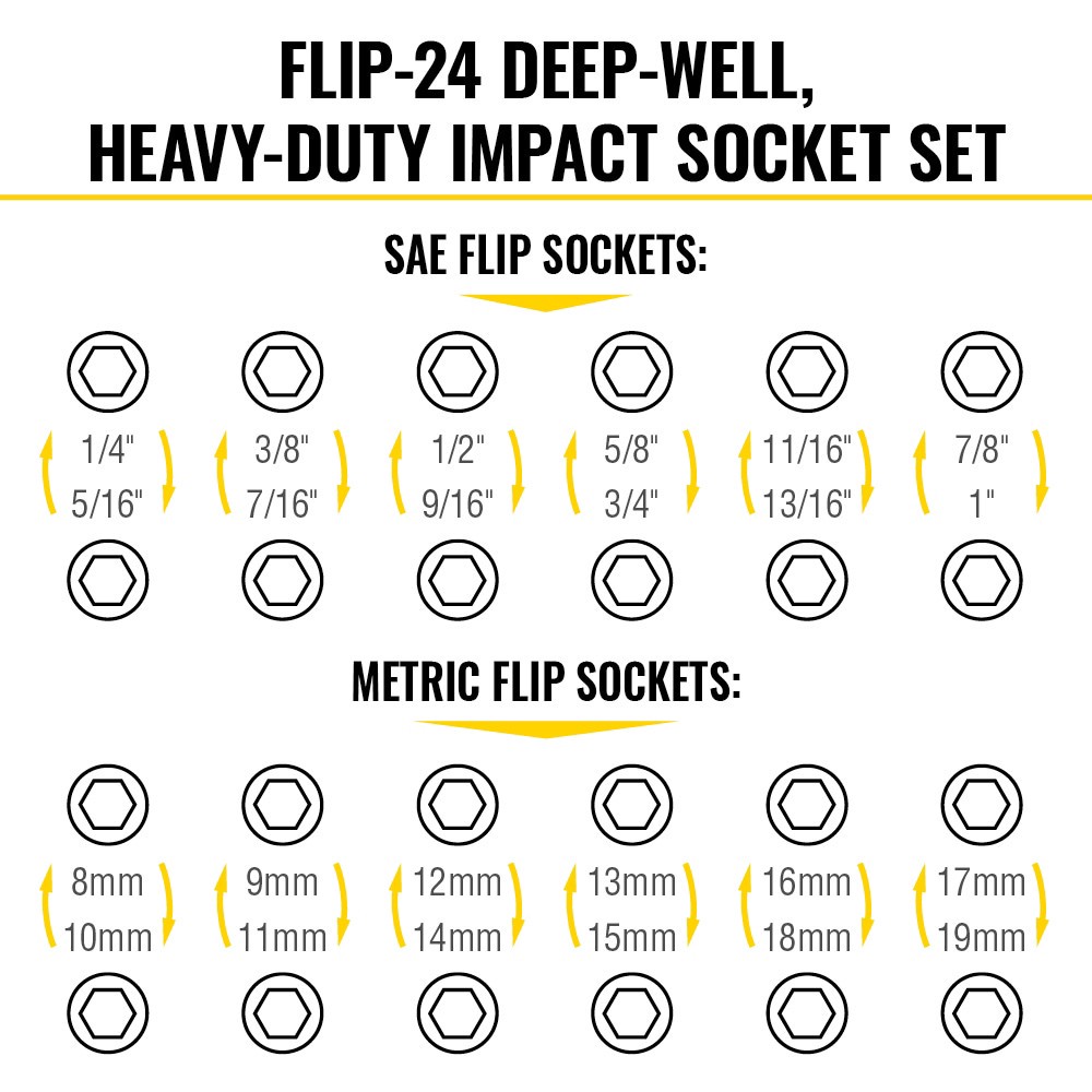 Impact Socket Set has a multi-purpose adapter making the sockets compatible with the Klein KNECT™ (M) system for unlimited driving potential. Deep Well Impact Flip Socket Set includes 24 SAE and metri…
