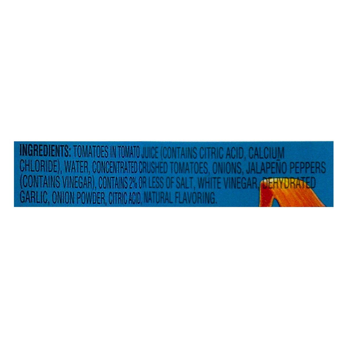 Tomatoes in Tomato Juice, (Contains Citric Acid, Calcium Chloride, Water, Concentrated Crushed Tomatoes, Onions, Jalapeno Peppers (Contains Vinegar), Contains 2 % or Less of Salt, White Vinegar, Dehyd…