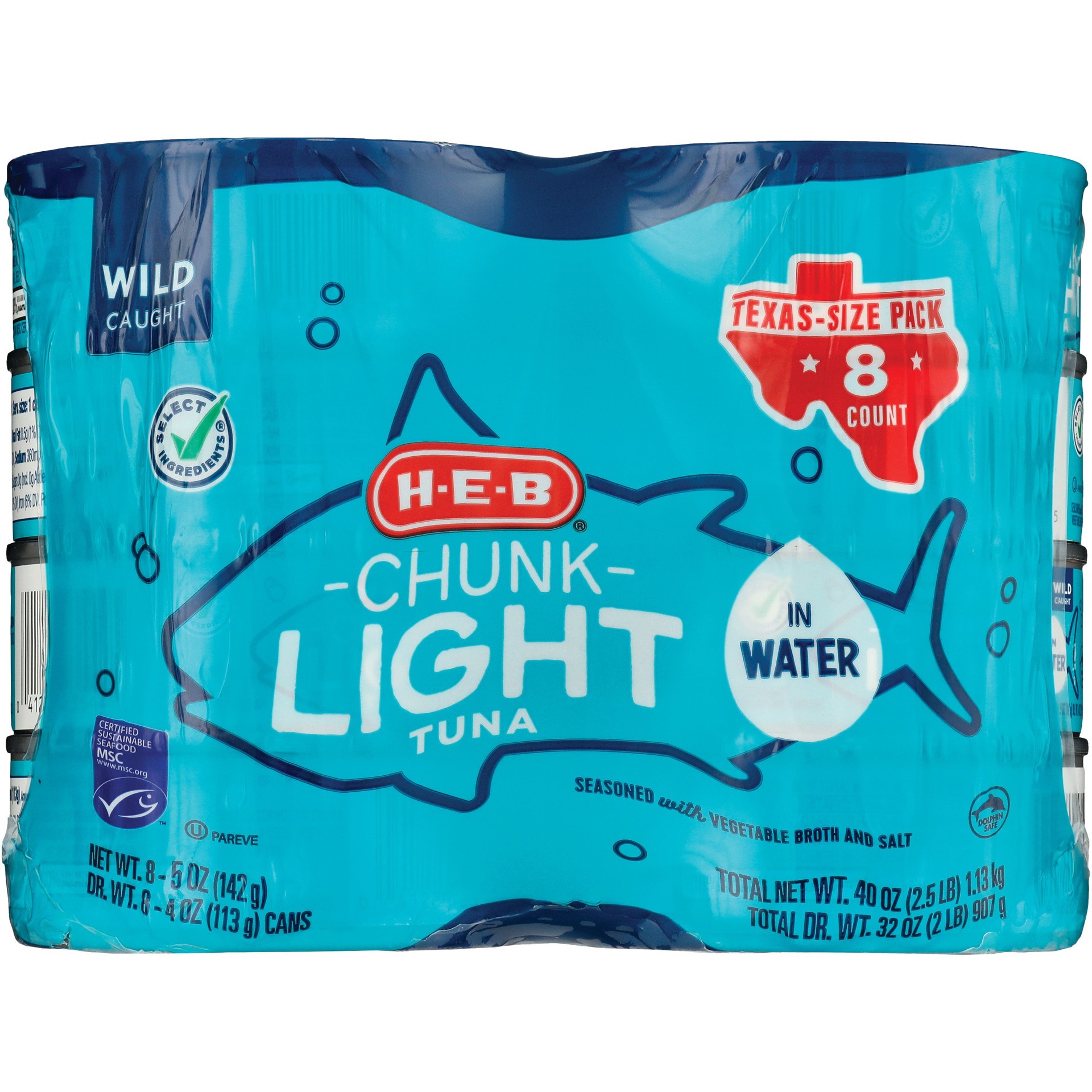 Stock up your pantry with this Texas-Size Pack of H-E-B Chunk Light Tuna in Water. It includes 8 cans of flaky tuna that's great for making sandwiches or dressing up a plain lettuce salad. Featuring a…
