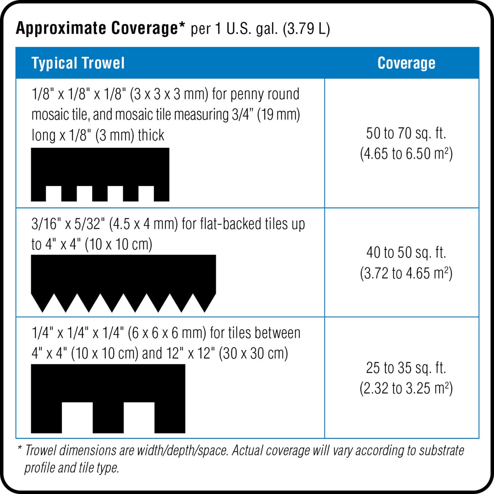 For use with ceramic and porcelain tile. Tile up to 12-in x 12-in on walls, 6-in x 6-in on floors. Suitable substrates: gypsum wallboard (dry walls only), cement board, exterior-grade plywood (interio…