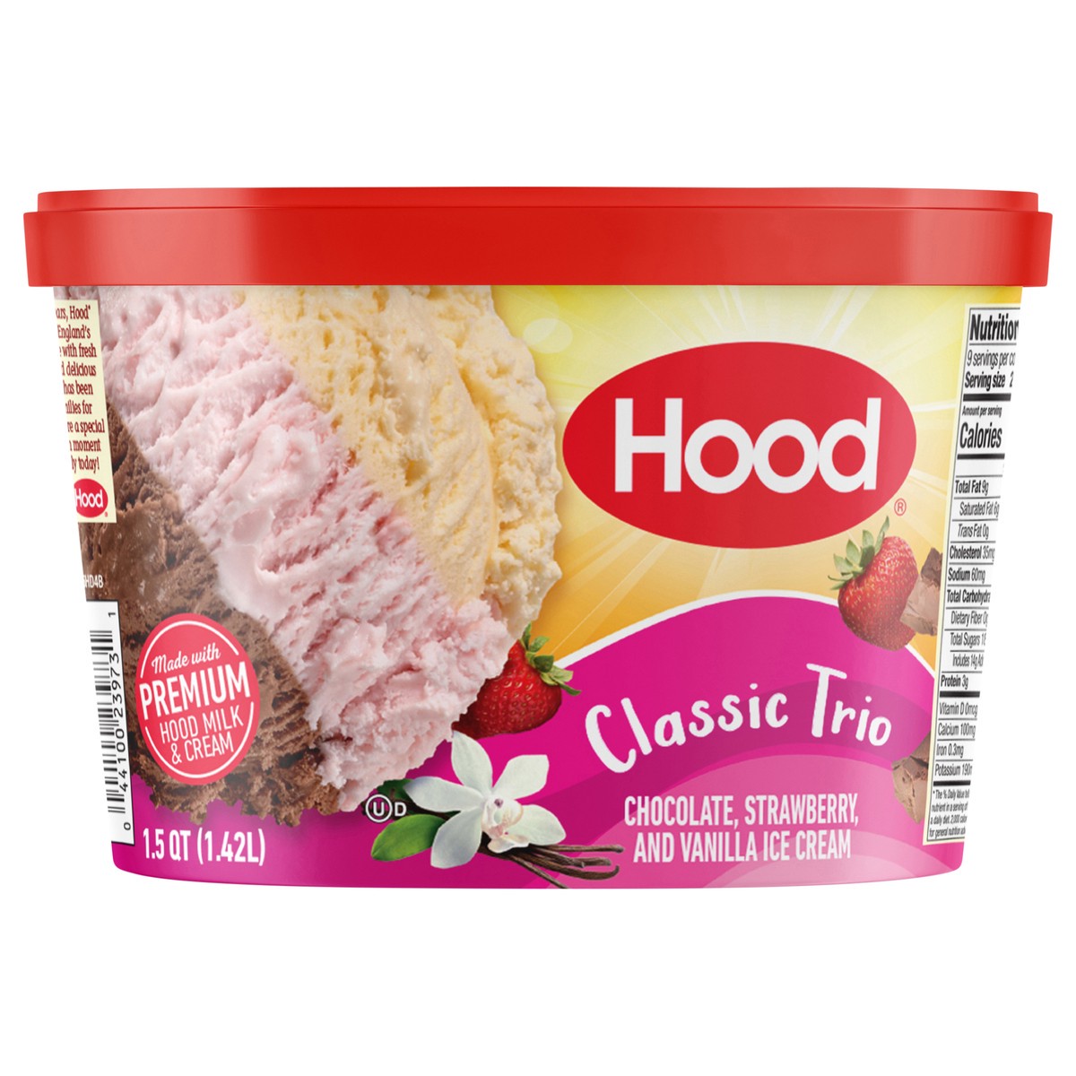 Get the rich, creamy, homemade ice cream taste in a trio of classics - chocolate, strawberry and vanilla flavored ice cream.