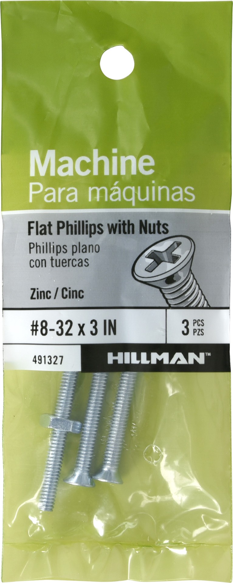 slide 1 of 3, Hillman #8 - 32 x 3-in Phillips -Drive Machine screws ( 3 -Count ), 1 ct