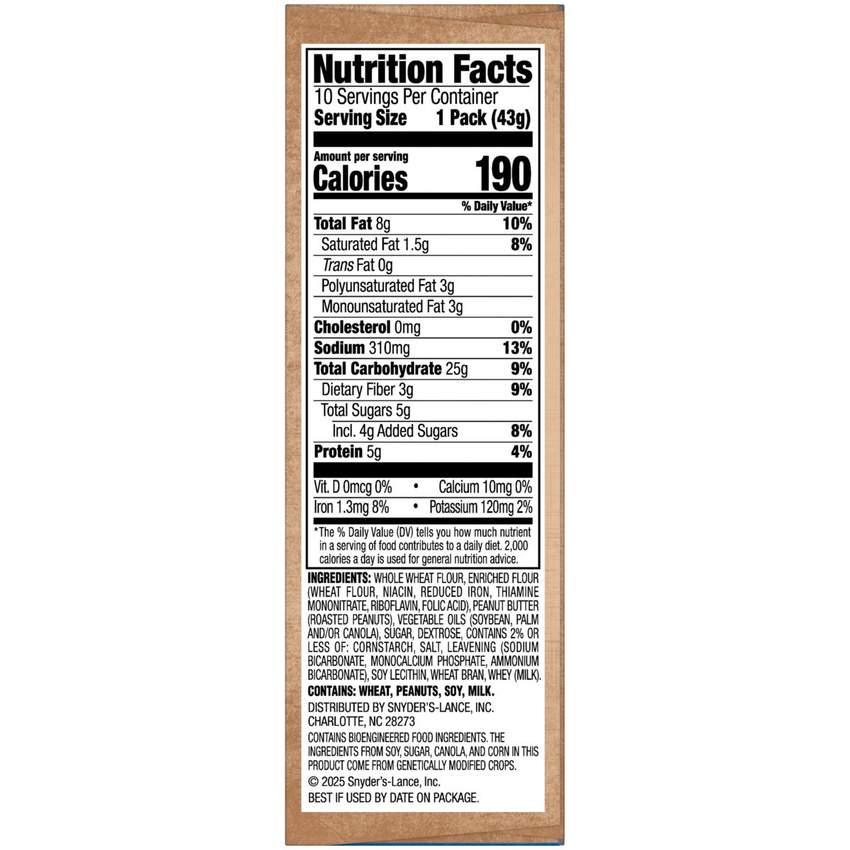 Lance Baked with Whole Grain Peanut Butter Sandwich Crackers, 10 Count 1.52 oz