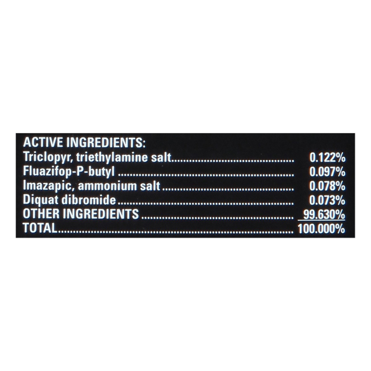 Active Ingredients: Triclopyr, Triethylamine Salt - 0.122%; Fluazifop-P-Butyl - 0.097%; Imazapic, Ammonium Salt - 0.078%; Diquat Dibromide 0.073%; Other Ingredients - 99.630%; Total - 100.000%. Contai…