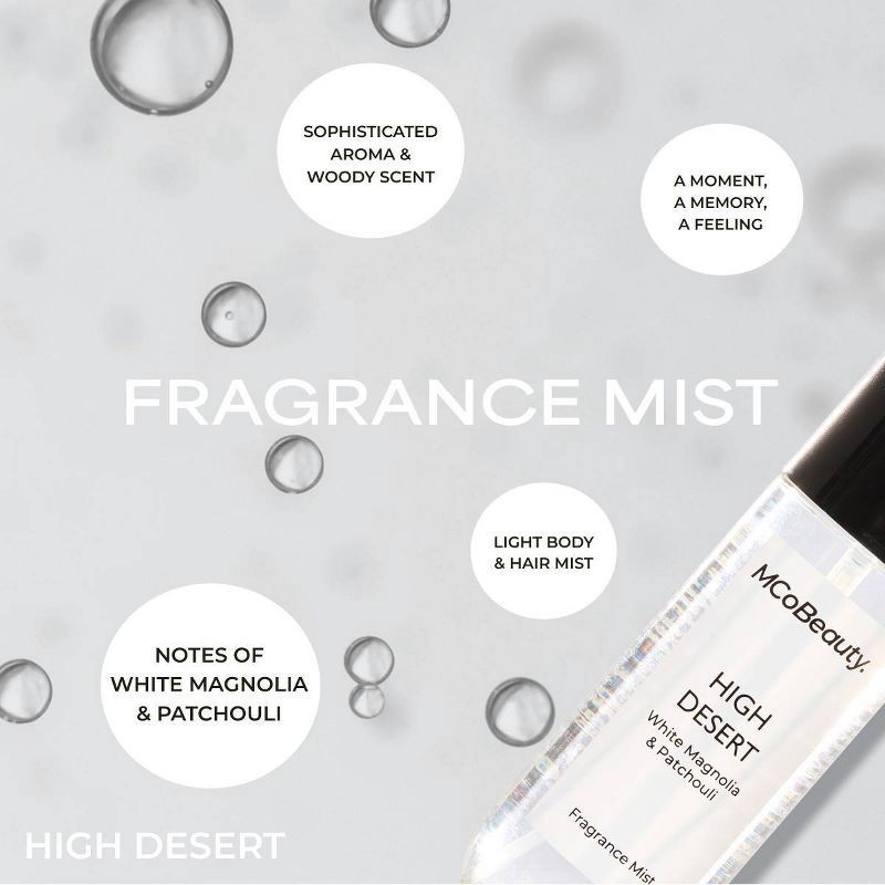 MCoBeauty FRAGRANCE MIST is a deeply evocative spray, with every spritz transporting your senses to an exotic escape.HIGH DESERT whisks you away with notes of Ambrette, White Magnolia, Violet and Sand…