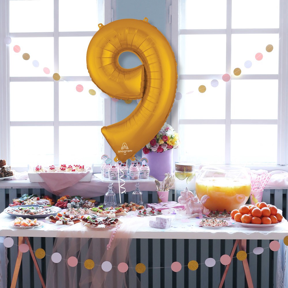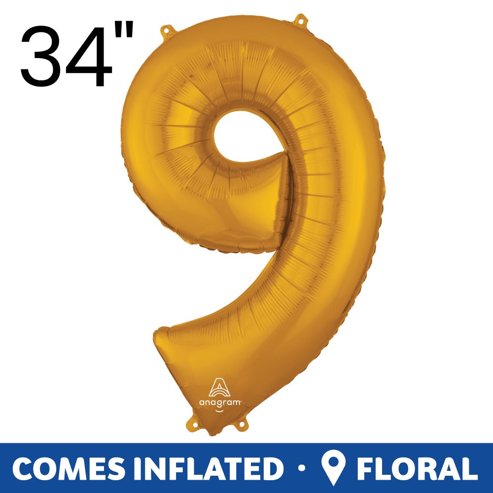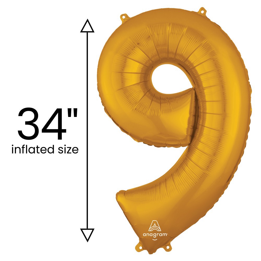 Gold Number 9 Helium Filled Balloon - 34 Inches Big