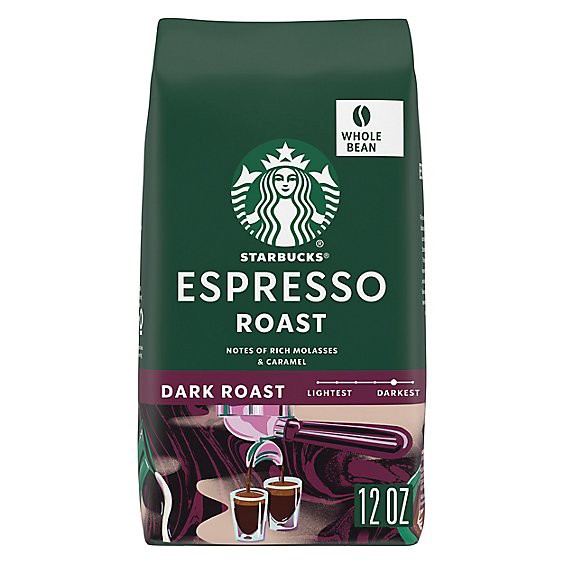 Starbucks Espresso Roast 100% Arabica Dark Roast Whole Bean Coffee Bag - 12 Oz