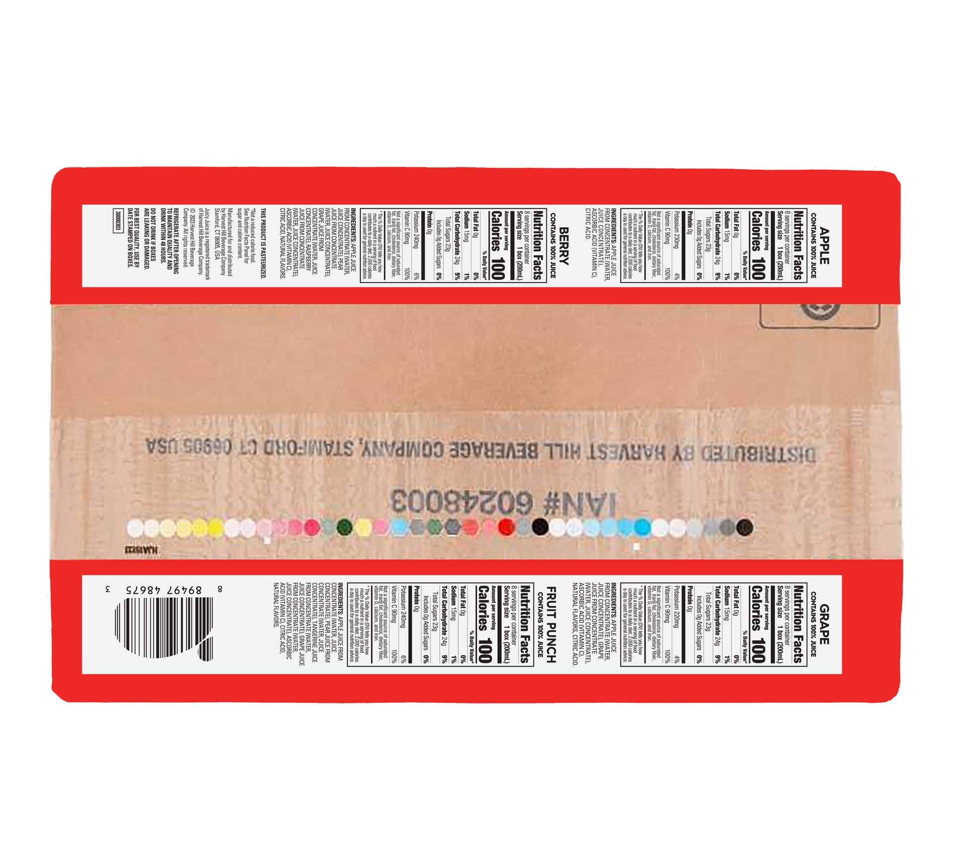 Apple: Apple Juice from Concentrate (Water, Juice Concentrate), Ascorbic Acid (Vitamin C), Citric Acid. Berry: Apple Juice from Concentrate (Water, Juice Concentrate), Pear Juice from Concentrate (Wat…