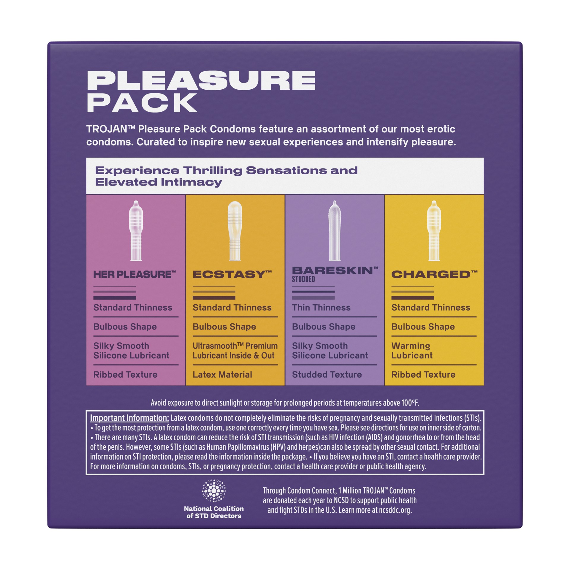 Unlock a world of thrilling sensations with the Trojan Pleasure Pack. This curated variety pack delivers four bold ways to explore what gets you and your partner going. Trojan Her Pleasure brings a co…
