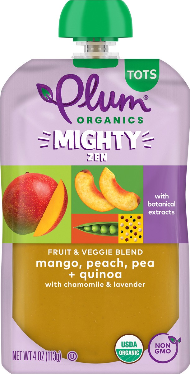 Plum Organics Veggie Blend Mango, Peach, Pea + Quinoa with Chamomile & Lavender 4oz Pouch