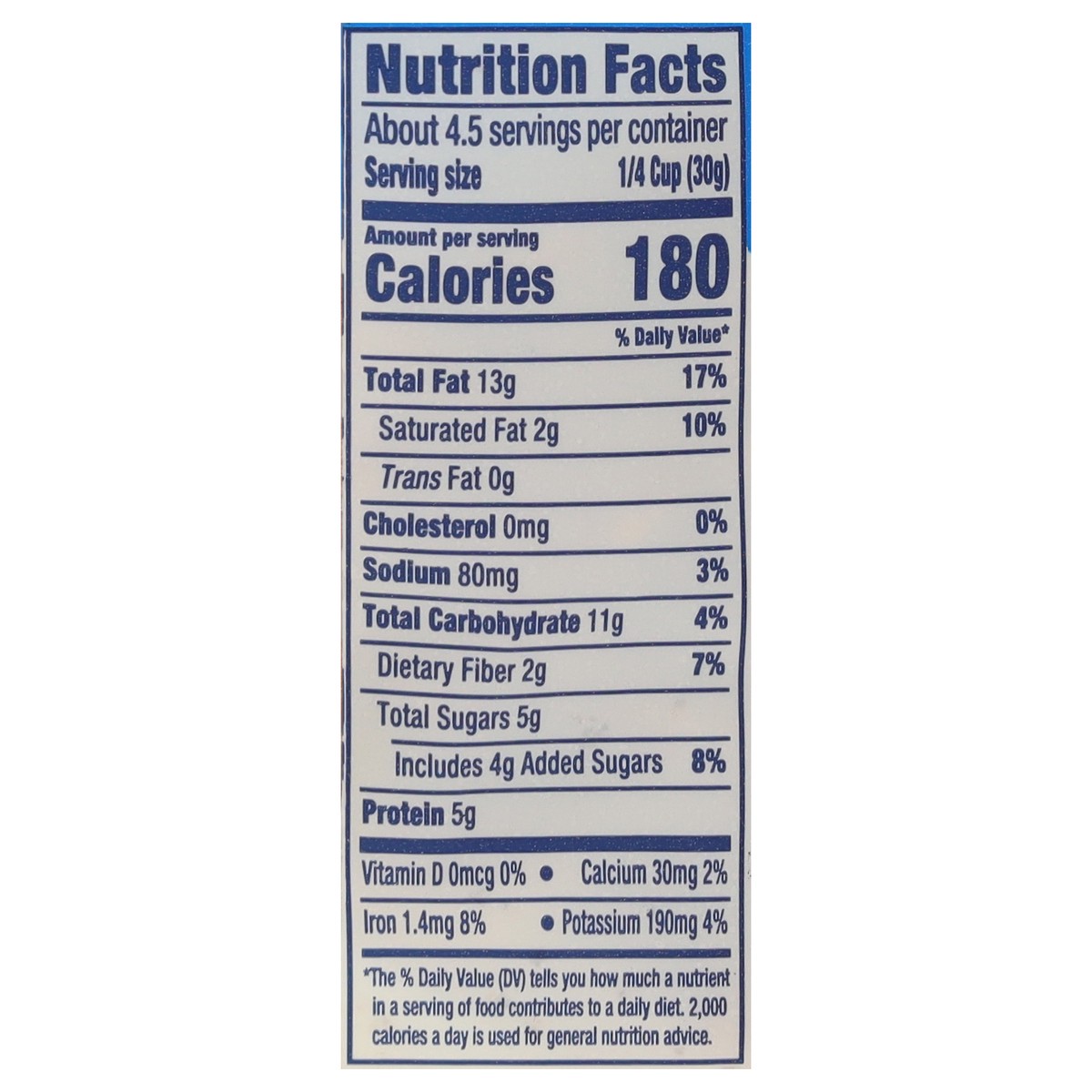 Cashews, Almonds, Sugar, Peanut Oil, Contains 2% or Less of Brown Sugar, Honey, Corn Syrup, Fructose, Sea Salt, Natural Flavors, Exhausted Vanilla Beans, Gum Arabic, Maltodextrin, Molasses Solids, Mon…