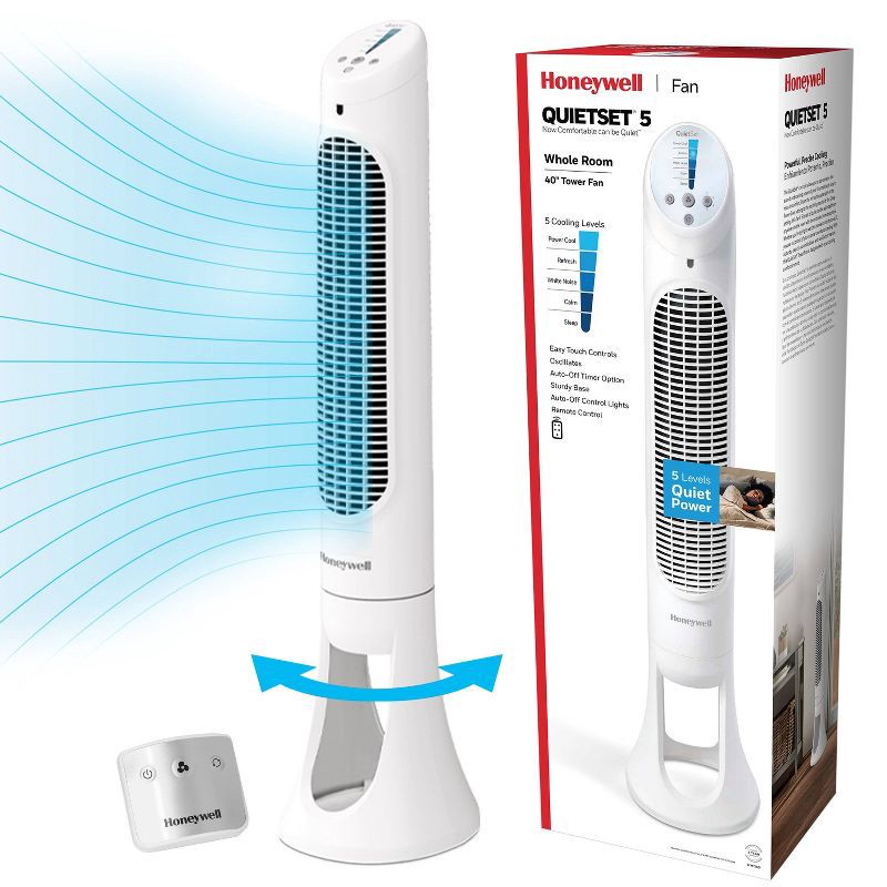 The Honeywell QuietSet® 40” Whole Room Tower Fan lets you have personalized comfort that includes 5 different levels of quiet operation for your personal sound and cooling needs. (Power Cool, Refresh,…