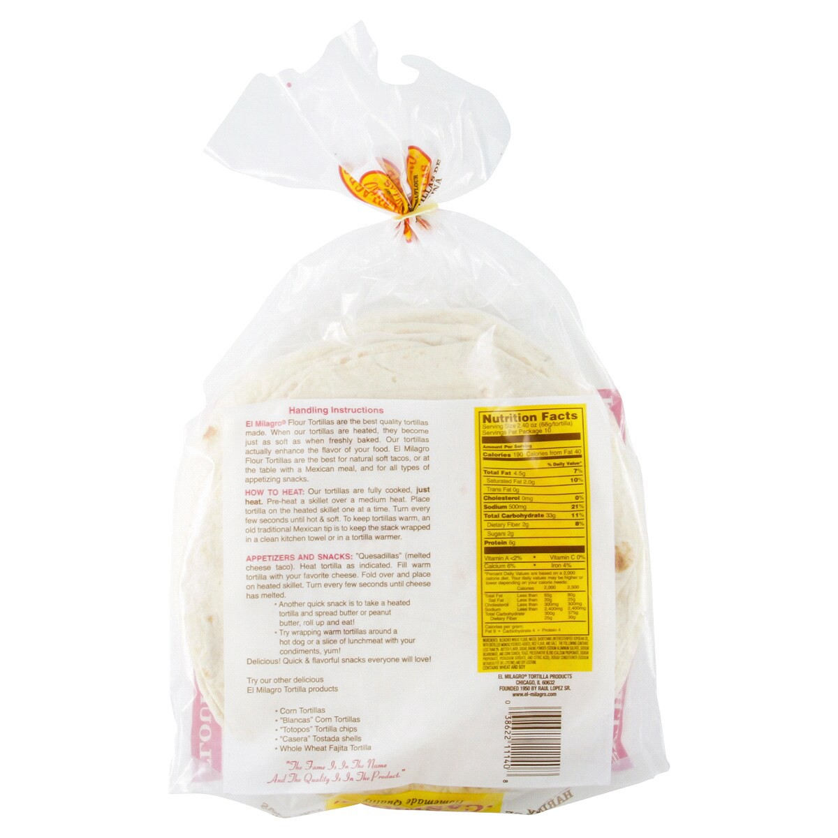 El Milagro flour tortillas are the best quality tortillas made. When our tortillas are heated they get just as soft as when they were freshly baked. Directions Refrigerate after opening. How to Heat: …