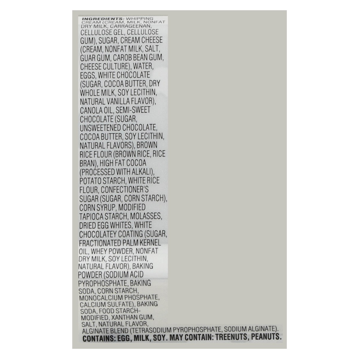 Whipping Cream (Cream, Milk, Nonfat Dry Milk, Carrageenan, Cellulose Gel, Cellulose Gum), Sugar, Cream Cheese (Cream, Nonfat Milk, Salt, Guar Gum, Carob Bean Gum, Cheese Culture), Water, Eggs, White C…