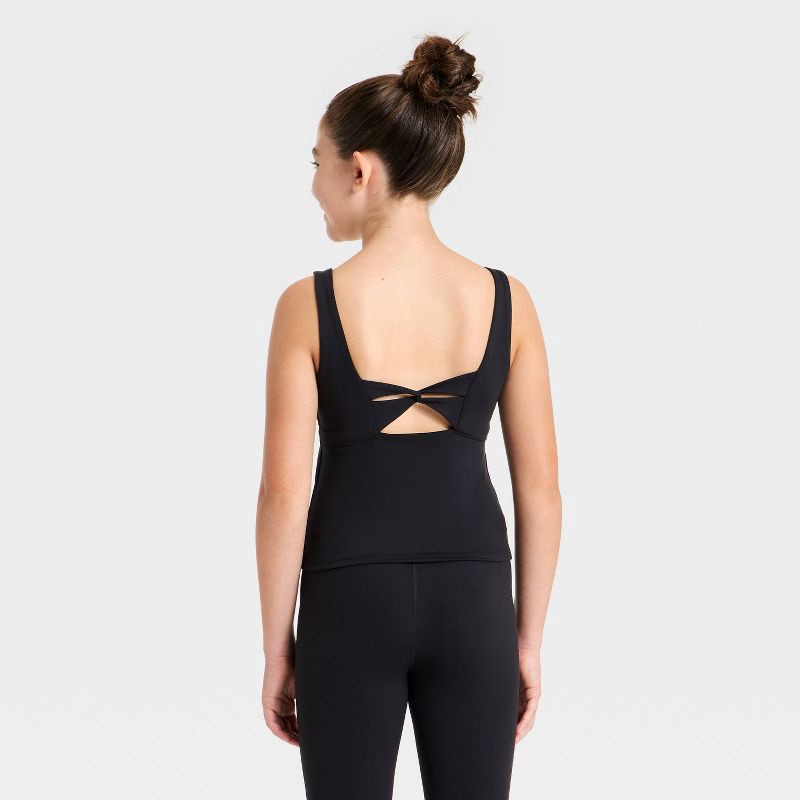 Girls' Active Twist-Back Crop Tank Top - All In Motion™ Black M