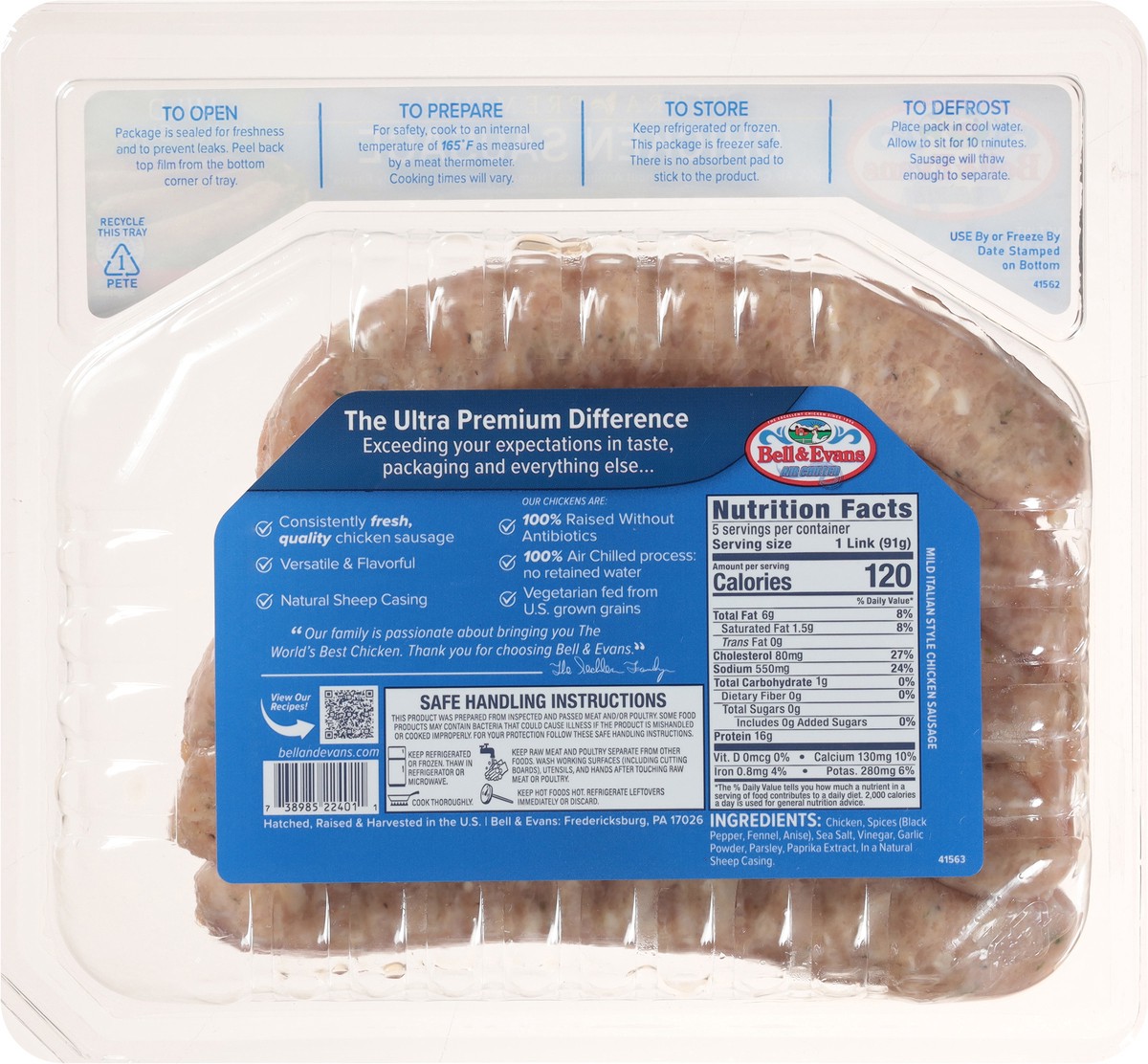 Bell & Evans Ultra Premium Mild Italian Style Chicken Sausage