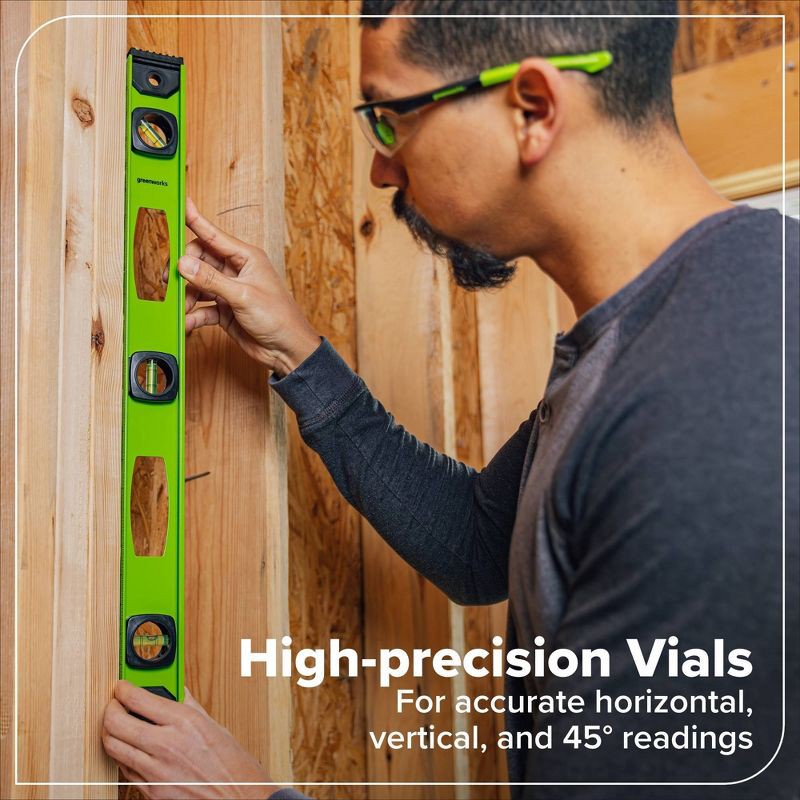 Get precise, reliable measurements with the Greenworks 24" level—your go-to tool for carpentry, construction, and DIY projects. Built for accuracy and durability, this level ensures every project is p…