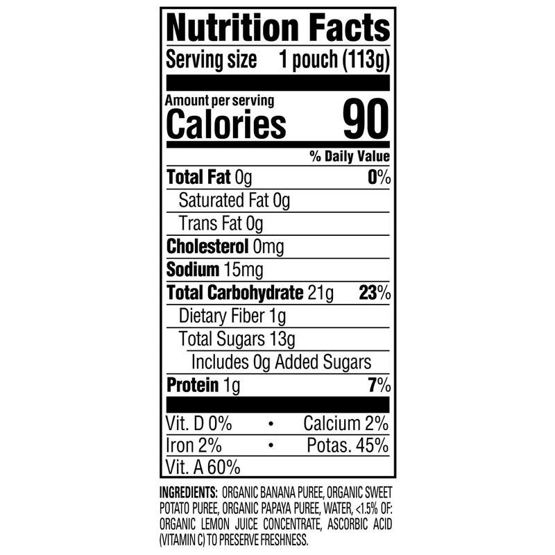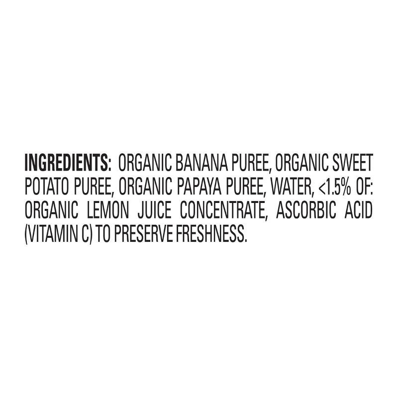 ORGANIC BANANA PUREE, ORGANIC SWEET POTATO PUREE, ORGANIC PAPAYA PUREE, WATER, <1.5% OF: ORGANIC LEMON JUICE CONCENTRATE, ASCORBIC ACID (VITAMIN C) TO PRESERVE FRESHNESS.