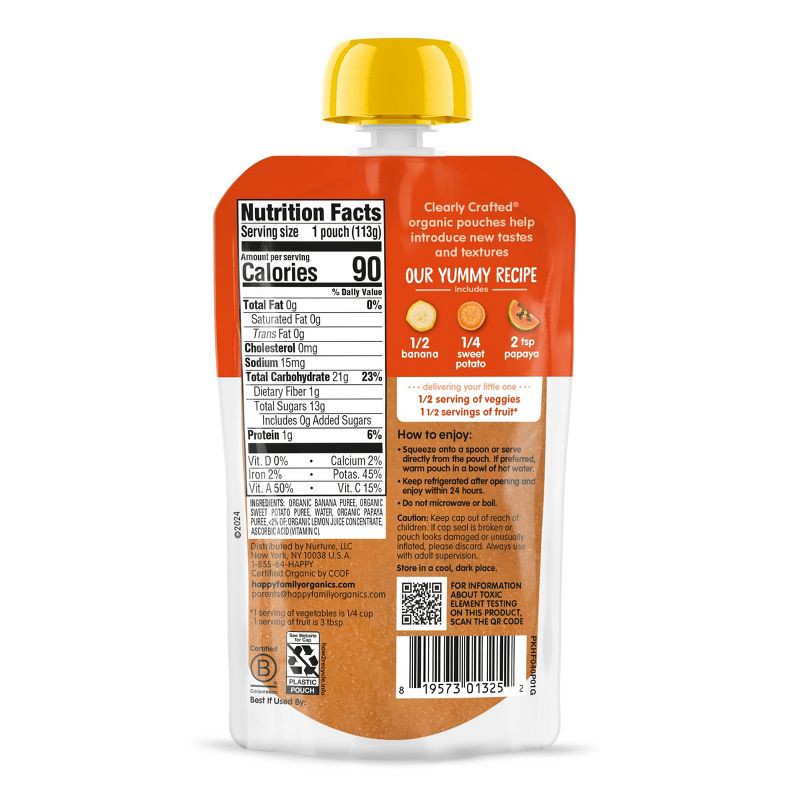 Happy Baby Organic Bananas, Sweet Potatoes & Papaya Baby Food Pouch - 4oz