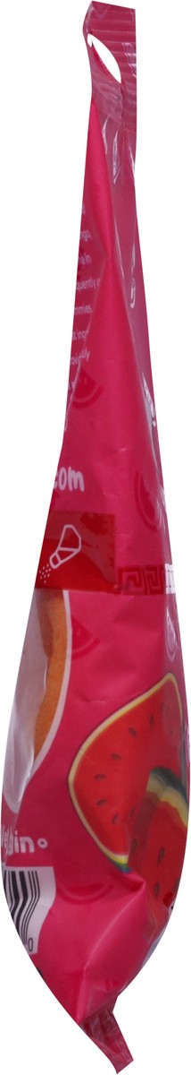 Watermelon flavored gummy rings dusted in chamoy with a touch of chilli.