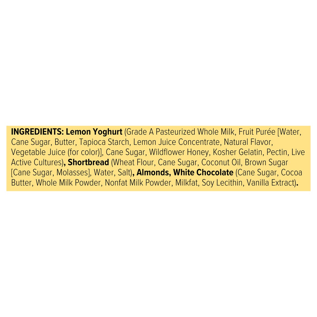 Lemon Yoghurt (Grade A Pasteurized Whole Milk, Fruit Puree [Water, Cane Sugar, Butter, Tapioca Starch, Lemon Juice Concentrate, Natural Flavor, Vegetable Juice (for Color)], Cane Sugar, Wildflower Hon…