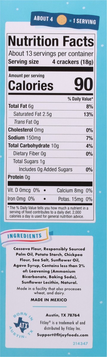 Cassava Flour, Responsibly Sourced Palm Oil, Potato Starch, Chickpea Flour, Sea Salt, Sunflower Oil, Agave Syrup, Contains Less than 2% of: Leavening (Ammonium Bicarbonate, Baking Soda), Sunflower Lec…