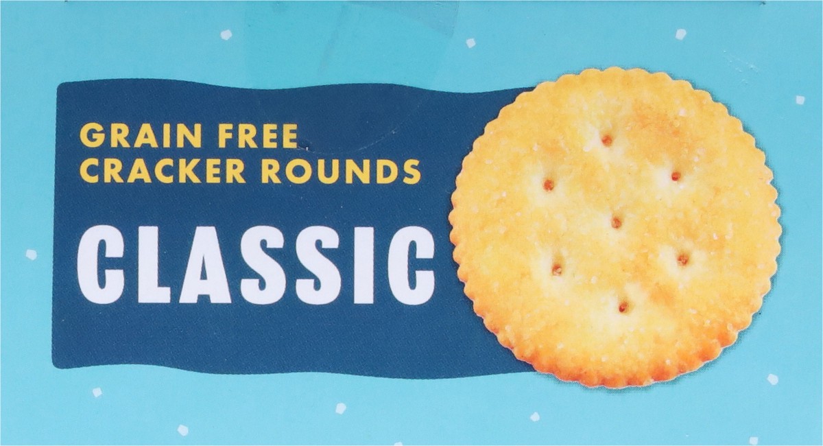 Ahh the ol’ classic cracker round in all its tasty glory. But wait, what’s this? Now without any of those bad actors: gluttonous gluten, no-good grain, and GMO, what’s a GMO anyway? You won’t find it …