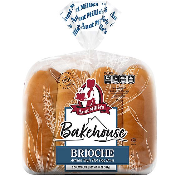 Aunt Millies Bakehouse Artisan Style Brioche Hot Dog Buns 8ct - 14 Oz