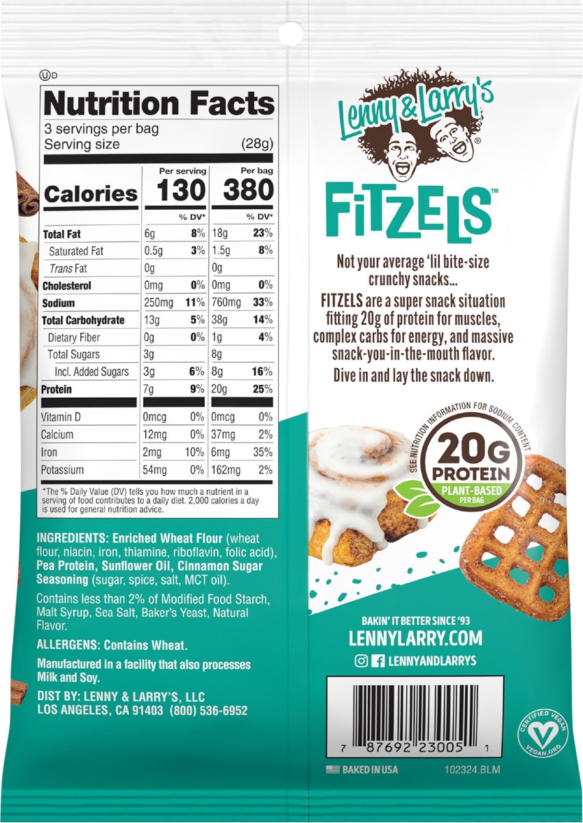 Lenny & Larry's Fitzels Protein Pretzels Cinnamon Buns Seasoned, 3 oz