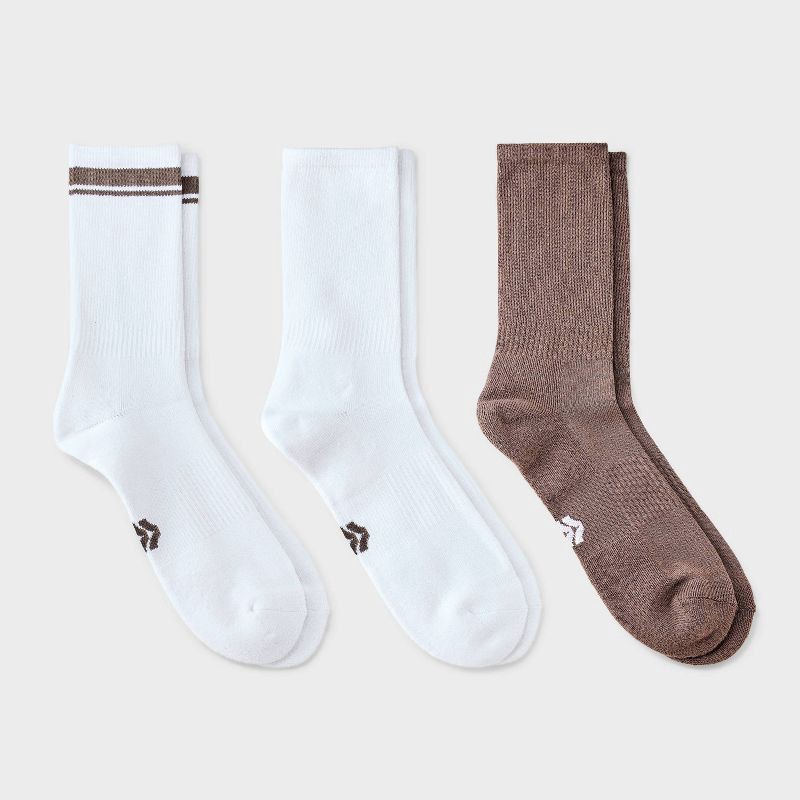 Why we're ALL IN:Three-pair pack of striped tonal varsity crew socks offers versatile wear with sneakers, casual shoes and boots. Made from a moisture-wicking, midweight knit fabric blend of recycled …