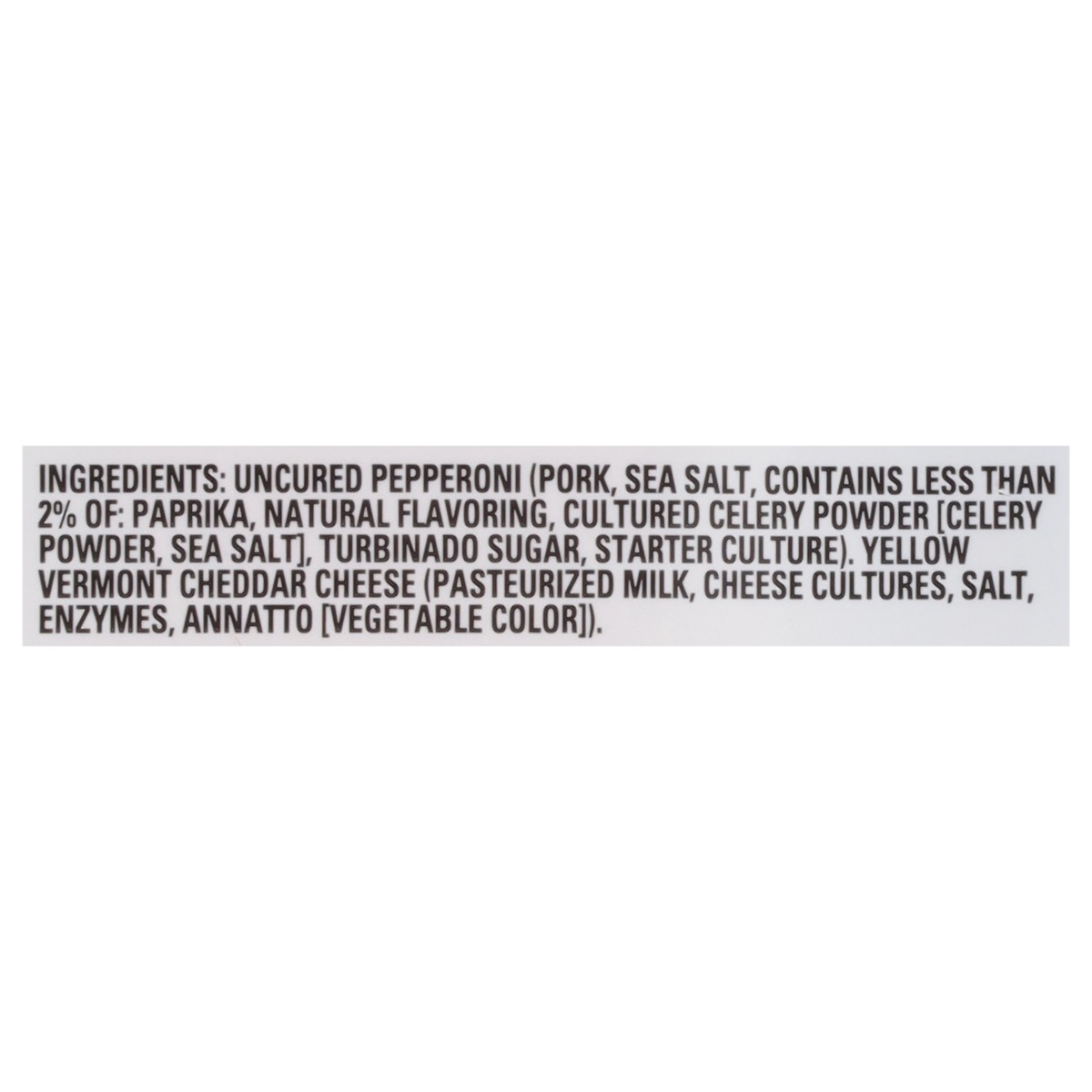 Uncured Pepperoni (Pork, Sea Salt, Contains Less than 2% of: Paprika, Natural Flavoring, Cultured Celery Powder [Celery Powder, Sea Salt], Turbinado Sugar, Starter Culture), Yellow Vermont Cheddar Che…