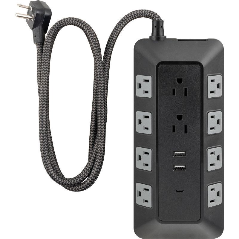 When you're tight on space but need reliable power, trust the GE-branded UltraPro 10-Outlet Surge Protector with USB Charging. With 10 adapter-spaced outlets, two USB-A ports and one USB-C port (20W s…