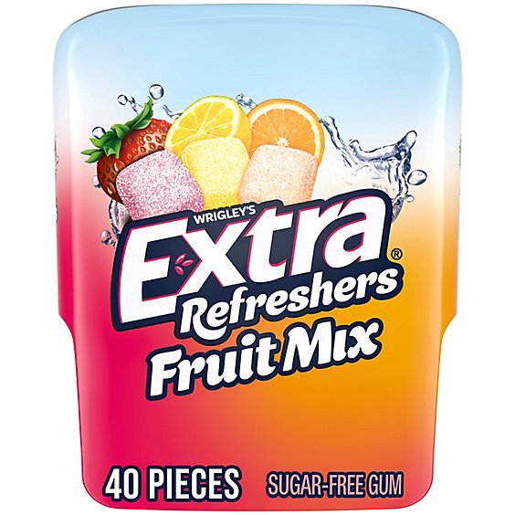 NEW EXTRA Refreshers Fruit Mix Sugar Free Chewing Gum gives you long lasting fruity flavor for any occasion. This NEW flavor experience combines 3 fan favorite flavors into one convenient resealable b…