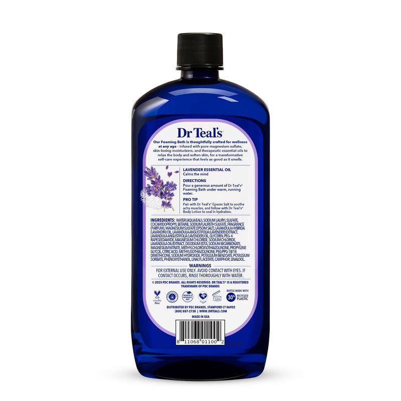 - Pour a generous amount of Dr Teal's Foaming Bath under warm, running water for a relaxing bubble bath experience. For an enhanced experience, pair with your favorite Dr Teal's Epsom Salt Magnesium Soak