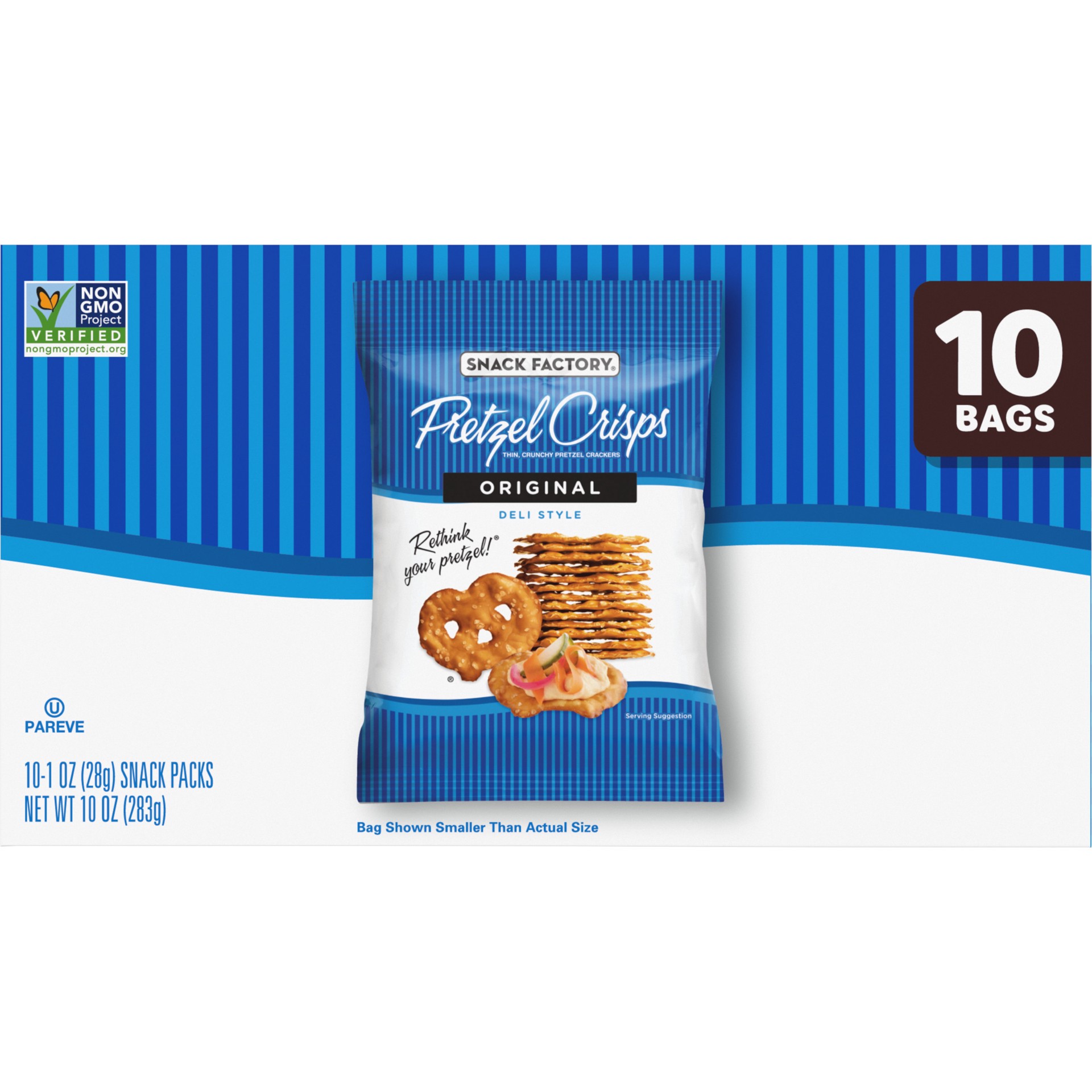 Snack Factory Original Pretzel Crisps are a modern twist on traditional pretzels. Baked thin and crunchy, this snack is a tasty, gourmet alternative to an old favorite. Pretzel Crisps give you the bes…