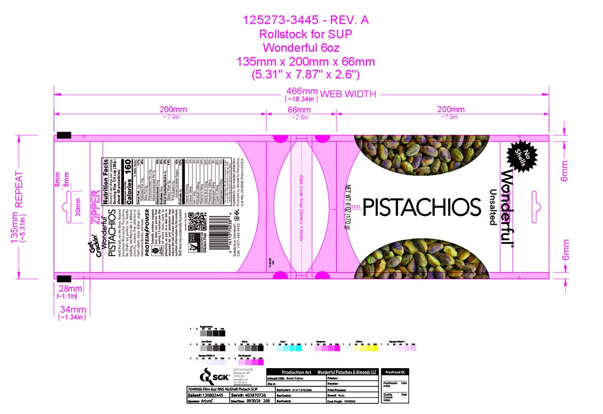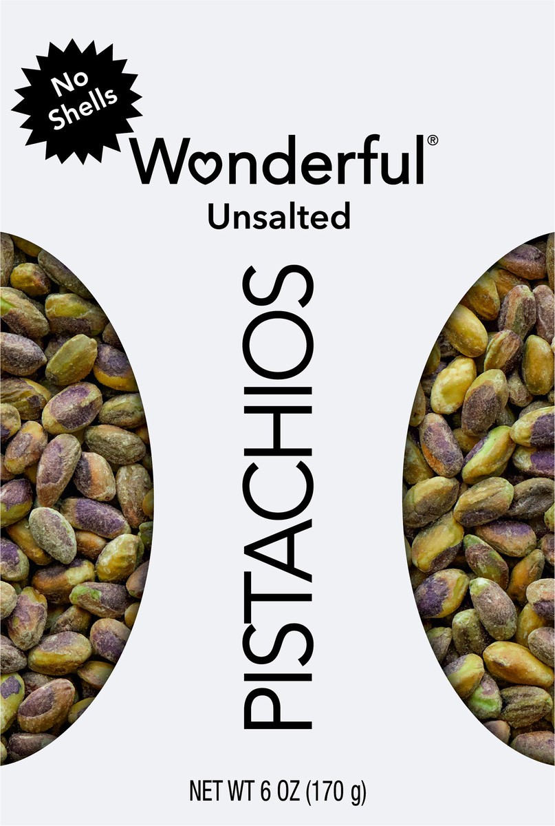 Wonderful Pistachios, No Shells Unsalted Nuts, 6 oz Bag
