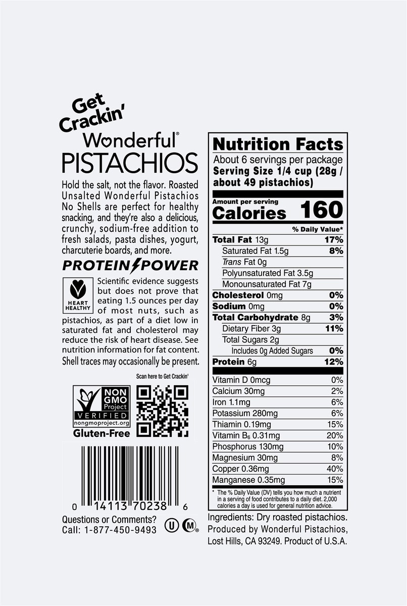 Hold the salt, not the flavor. Roasted Unsalted Wonderful Pistachios No Shells are perfect for smart snacking, and they're also a delicious, crunchy addition to fresh salads, pasta dishes, yogurt, and…
