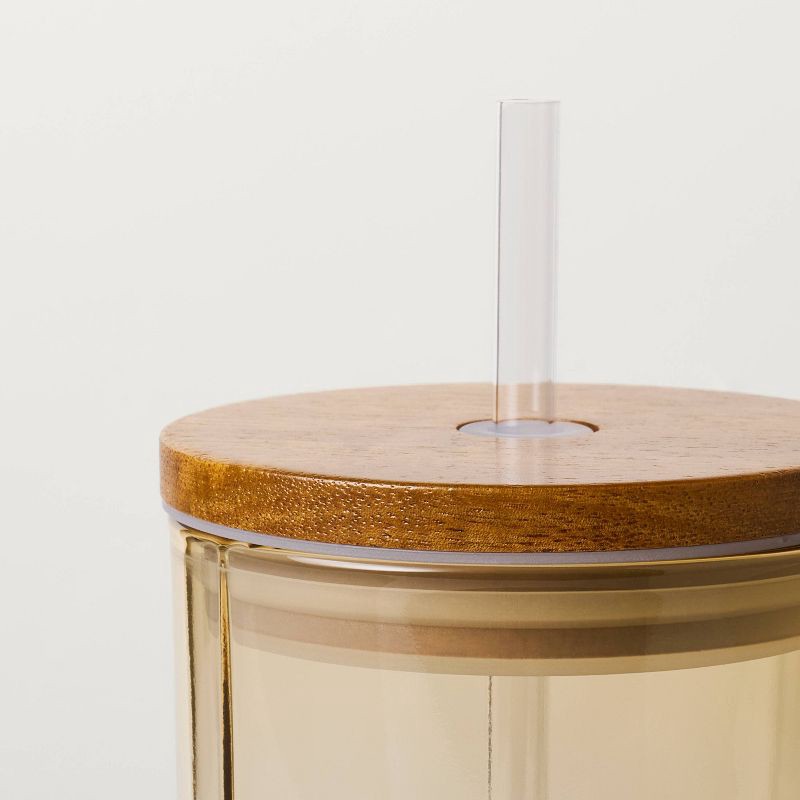 Hearth & Hand with Magnolia 21oz Glass Tumbler with Wooden Lid Brown - Hearth & Hand™ with Magnolia