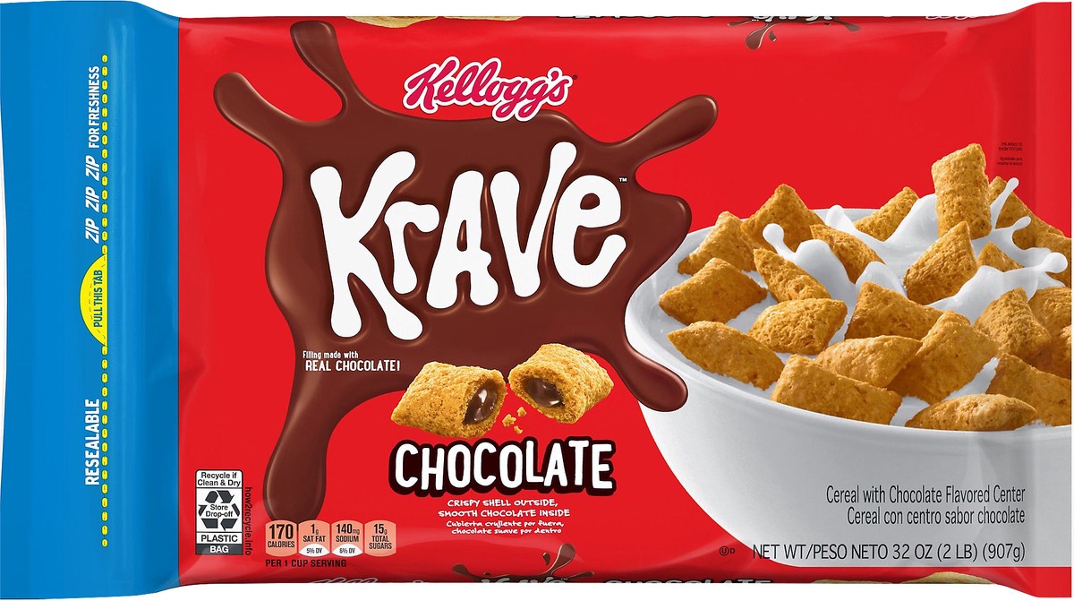 Kellogg's Krave Breakfast Cereal, Kids Cereal, Family Breakfast, Chocolate, 32oz Bag (1 Bag)