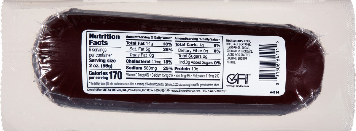 Dietz & Watson Pork & Beef Summer Sausage 12 oz