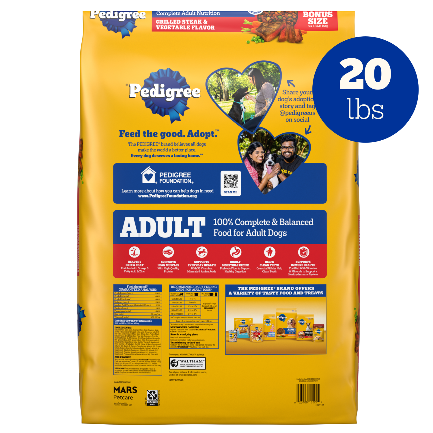 Dogs bring out the good in us. Pedigree dog food brings out the good in them. Express your love for your dog by serving Pedigree Complete Nutrition Adult Dry Dog Food, Grilled Steak & Vegetable Flavor…