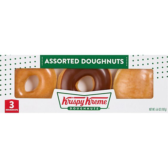 Krispy Kreme 3-Count Classic Assorted Doughnuts are delivered fresh from your local Krispy Kreme shop directly to select grocery stores. Featuring some of the best-selling Krispy Kreme doughnut variet…