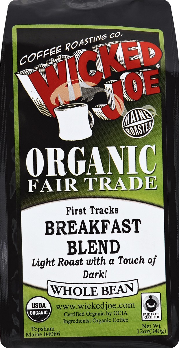 Wicked Joe Coffee Co. Organic Whole Bean Medium Roast Breakfast Blend Coffee 12 oz