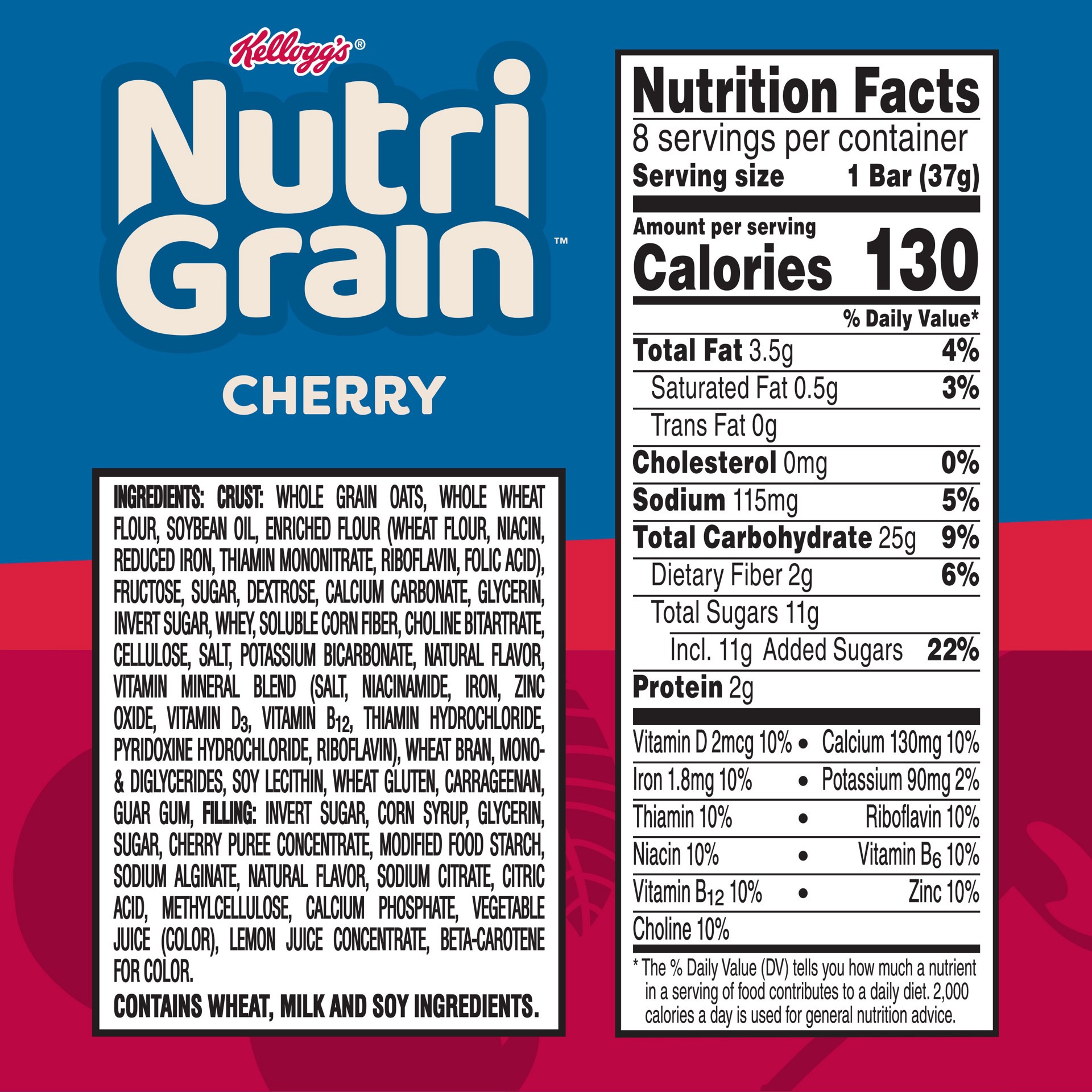 Nutri-Grain Breakfast Bars Cherry Made With 10g Whole Grains - 8 - 10.4 Oz