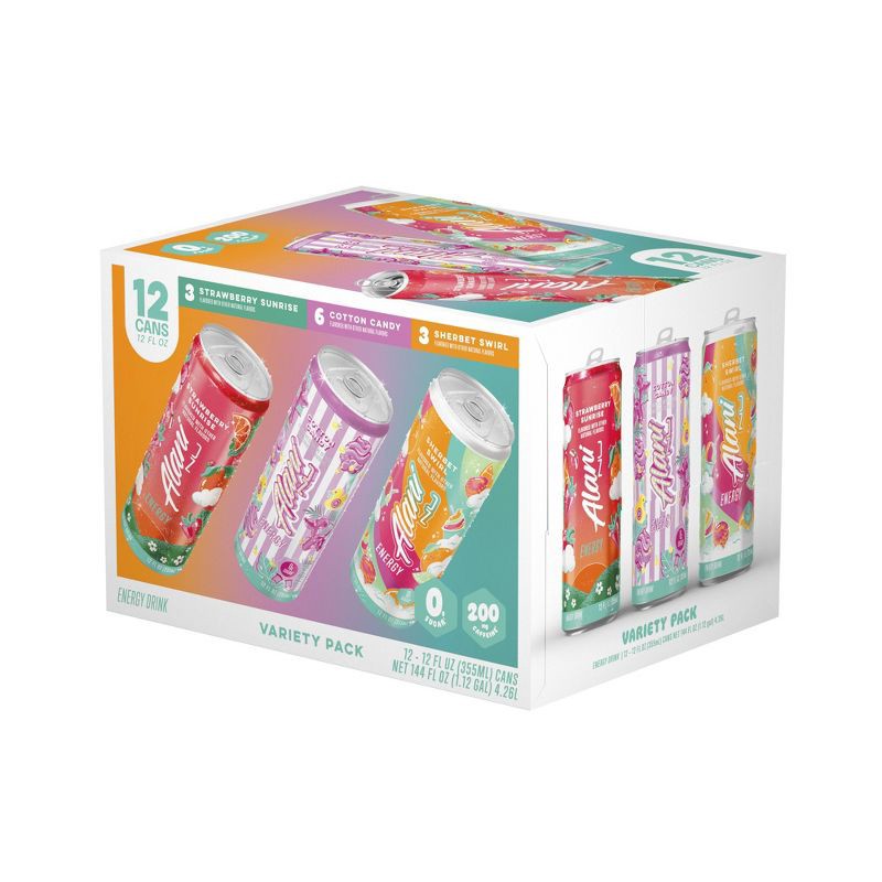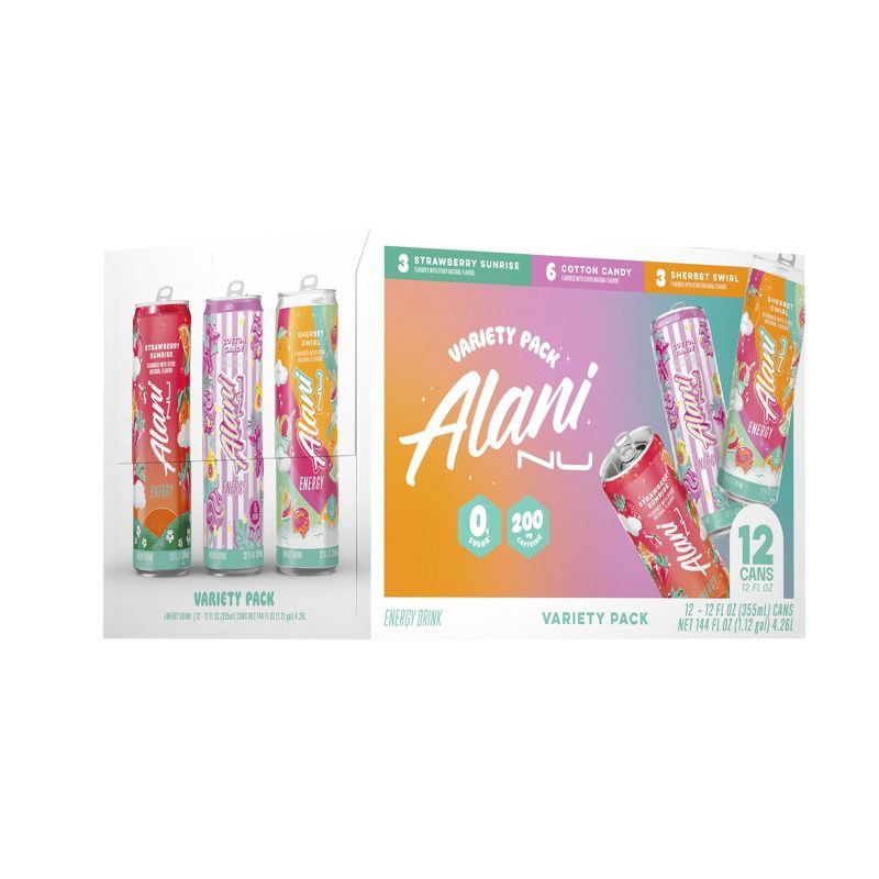Alani Nu Variety Pack Energy Drink ( Cotton Candy, Strawberry Sunrise, Sherbet Swirl) - 12pk/12 fl oz Cans