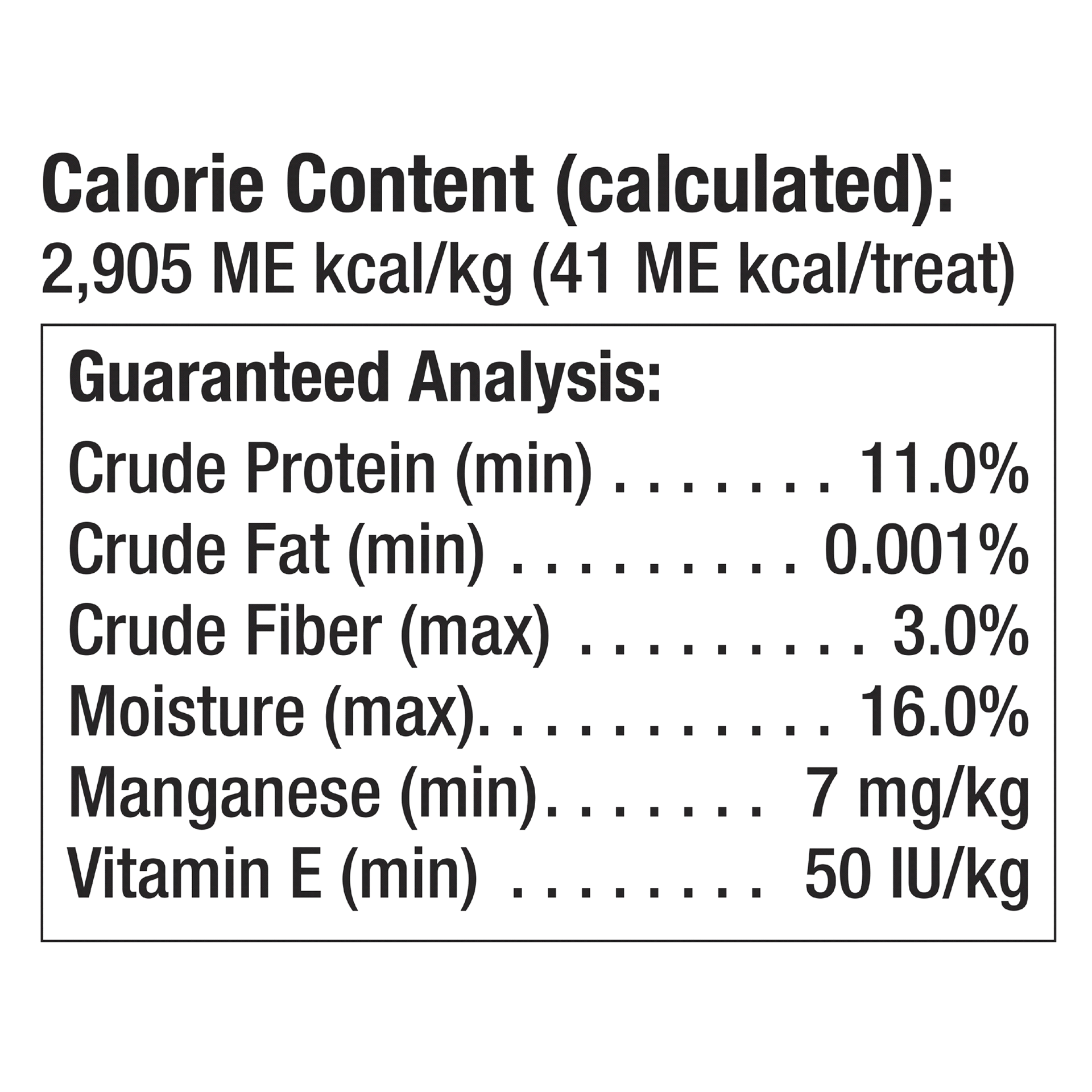 Calorie Content (calculated): 2,905 ME kcal/kg (41 ME kcal/chew).