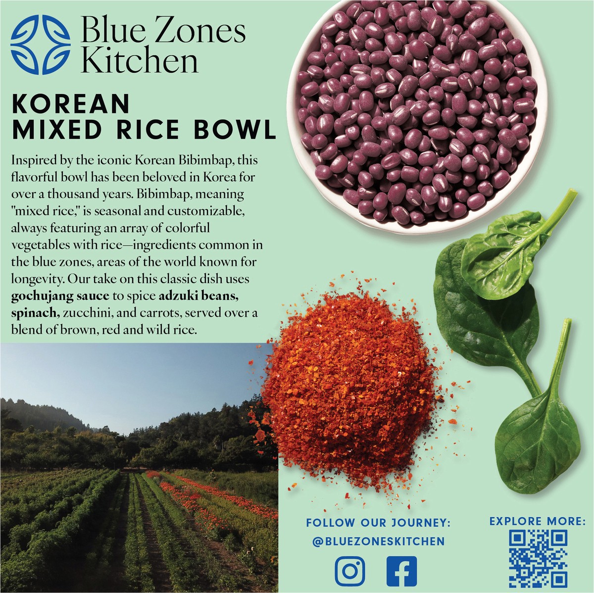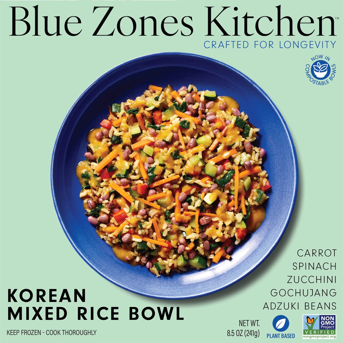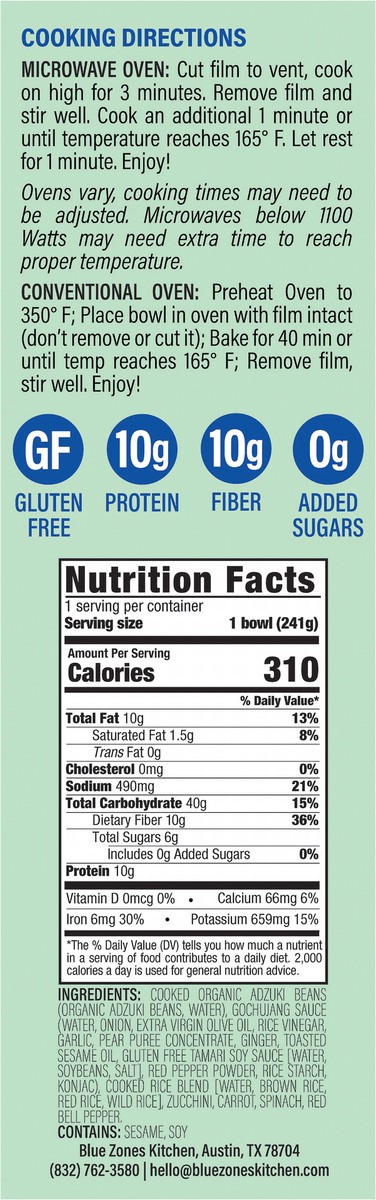 Carrot. Spinach. Zucchini. Gochujang. Adzuki beans. 10 g protein; 10 g fiber; 0 g added sugars. Gluten free. Non-GMO Project verified. nongmoproject.org. Crafted for longevity. Plant based. Inspired b…
